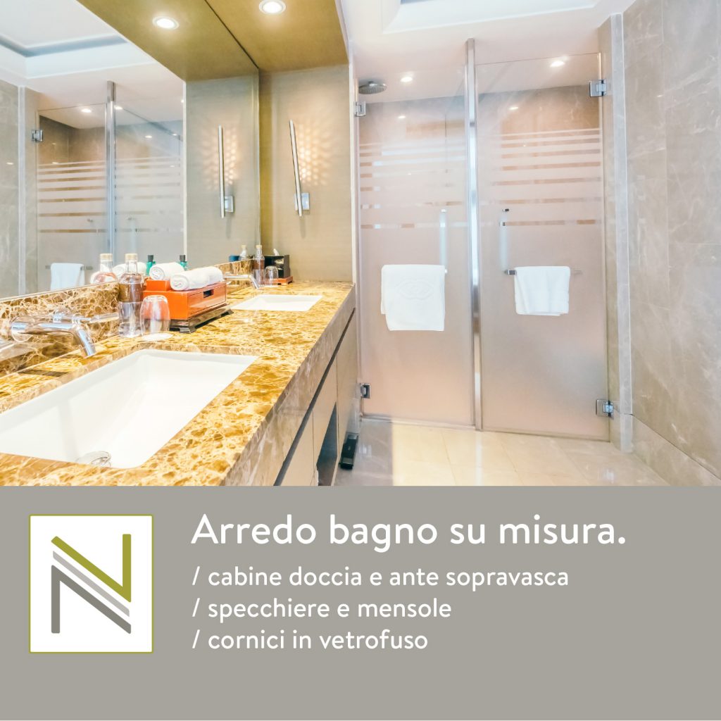Per il tuo bagno, proponiamo inoltre vari complementi d’arredo, sempre su misura e personalizzati: dagli specchi alle mensole, alle ante in vetro sopravasca.