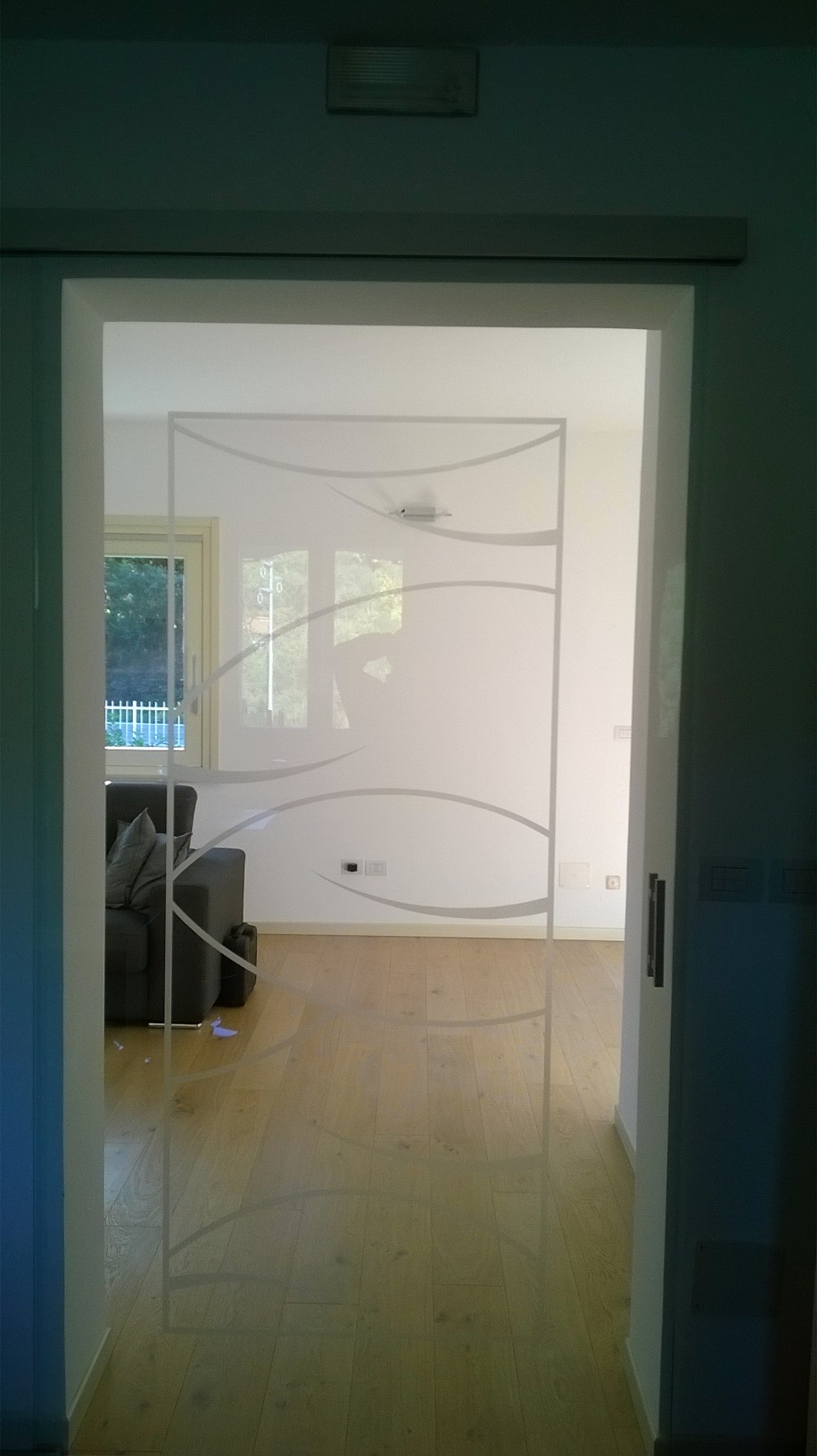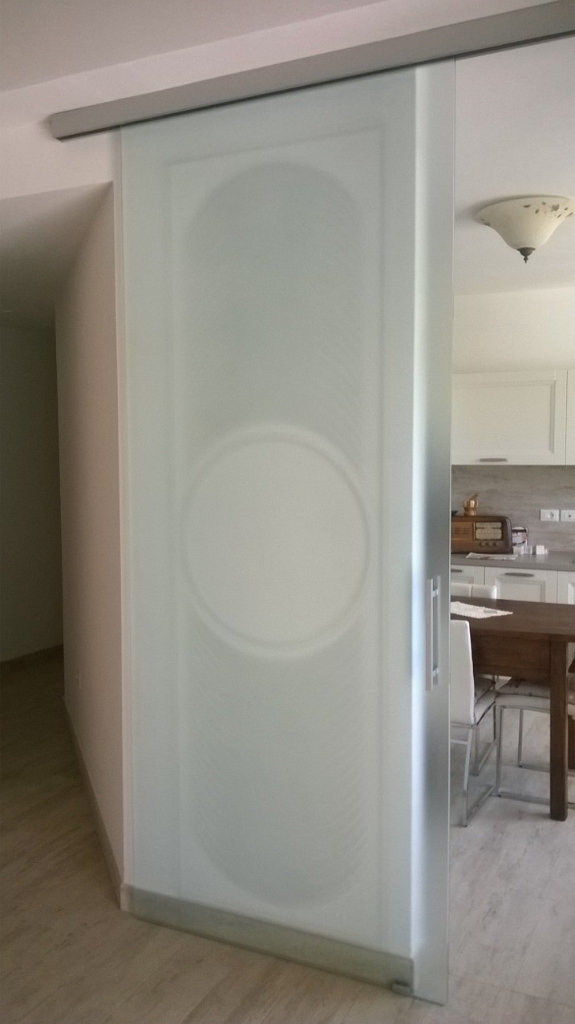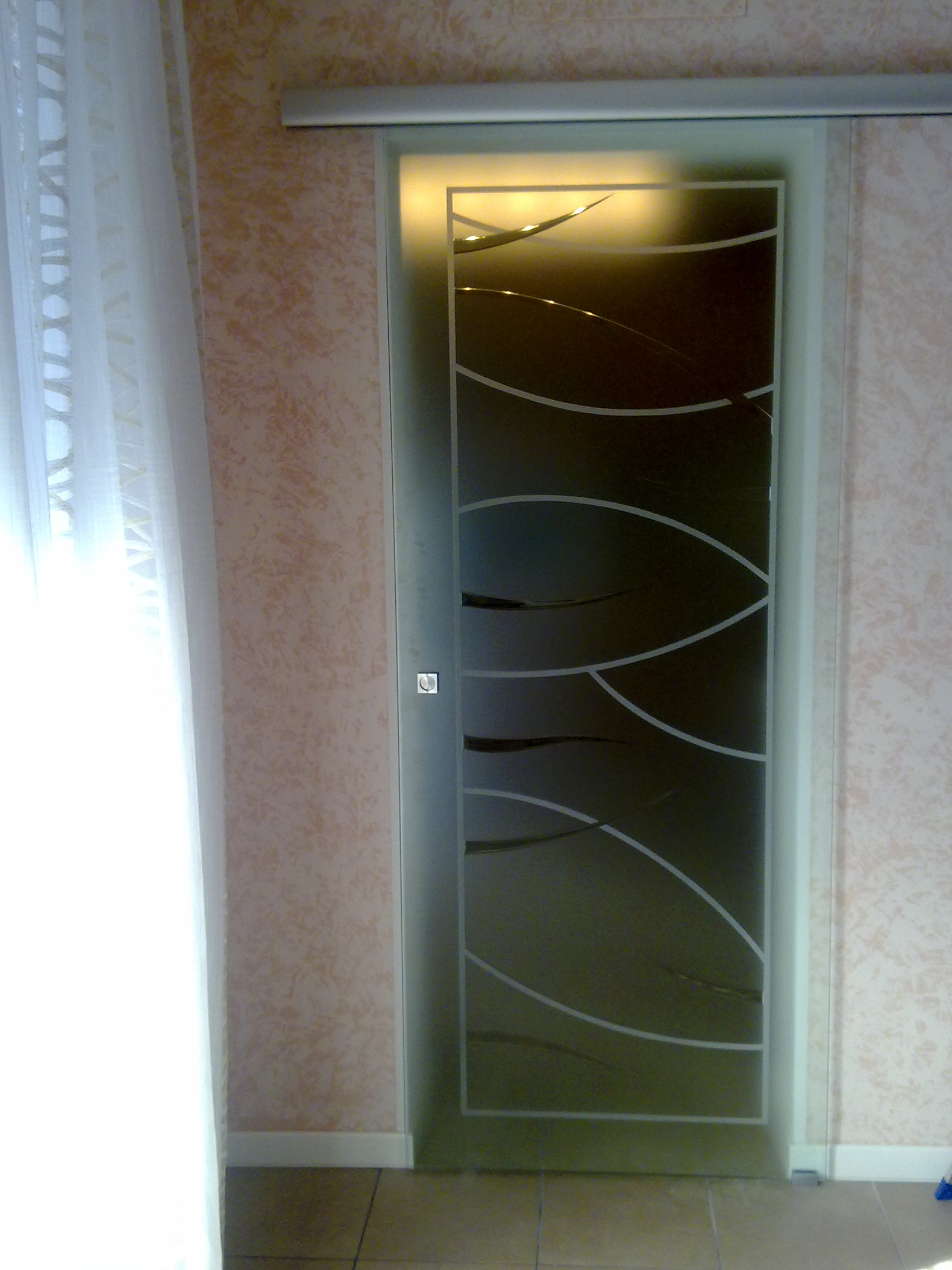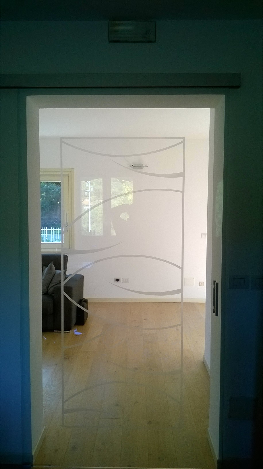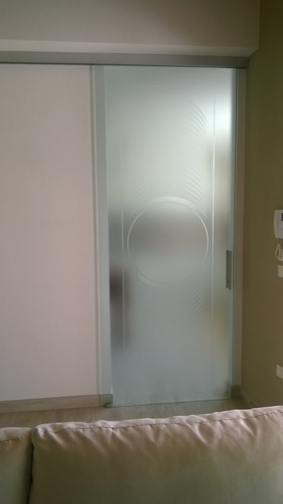 - porta in vetro scorrevole con decoro sabbiato e verniciato completo di kit in alluminio