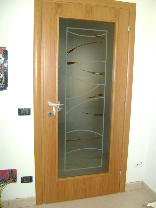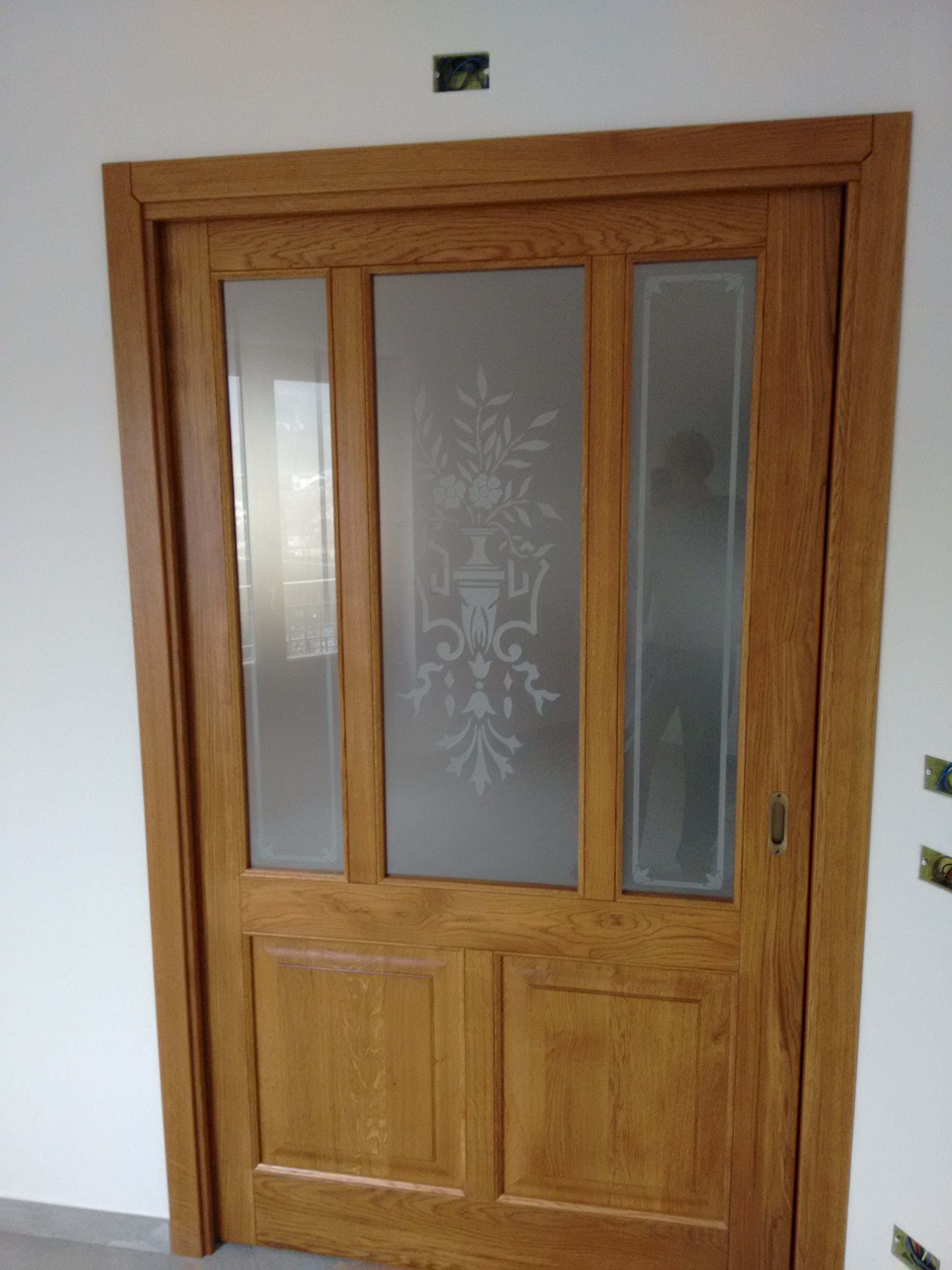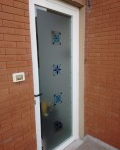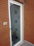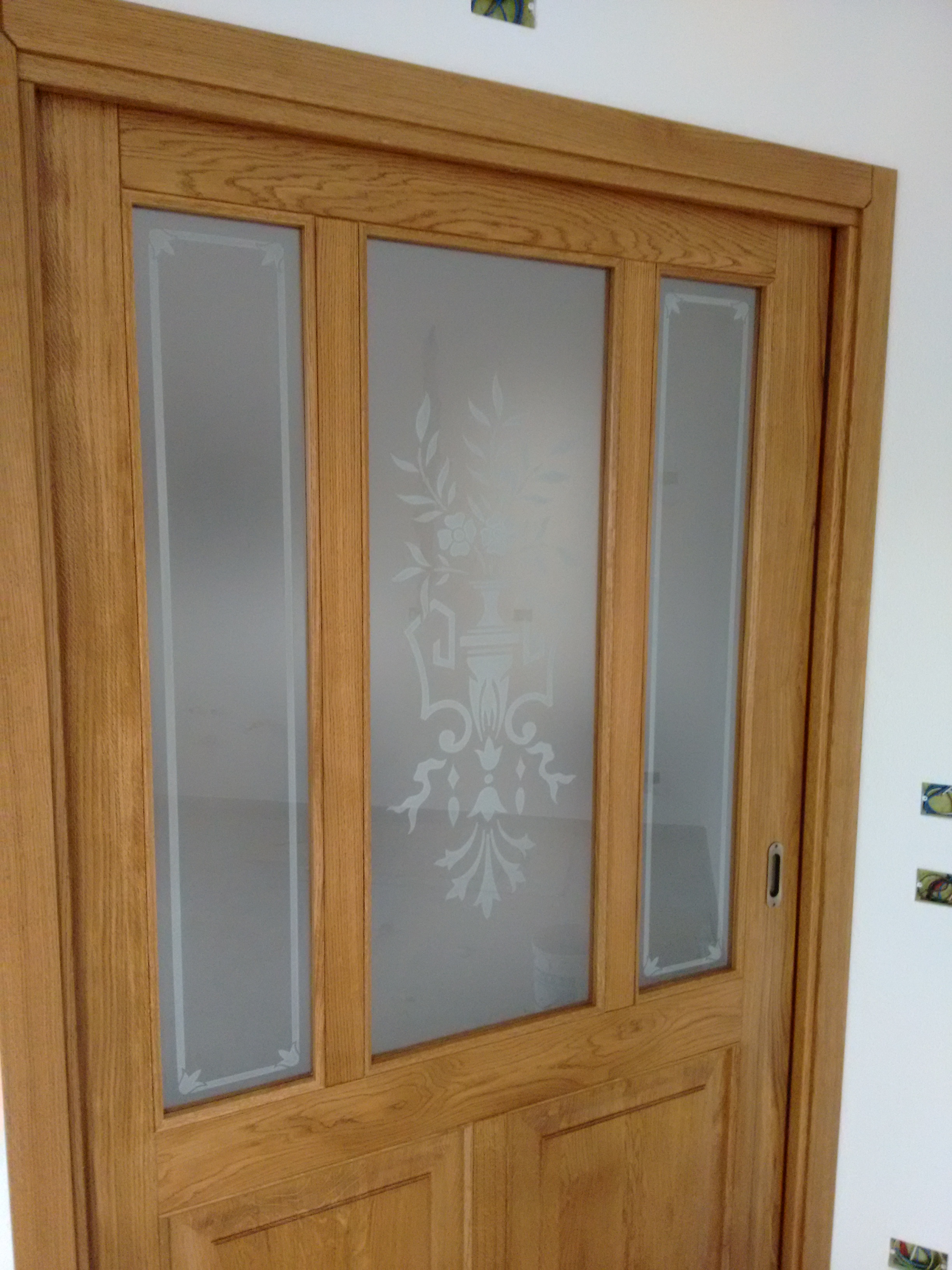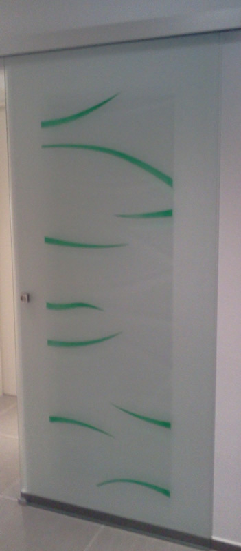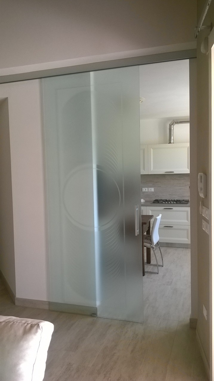 - porta in vetro scorrevole con decoro sabbiato e verniciato completo di kit in alluminio
