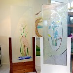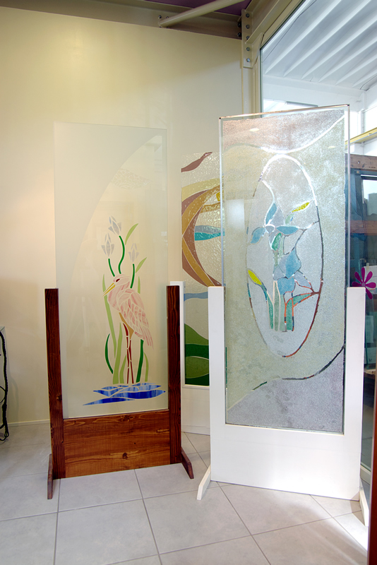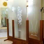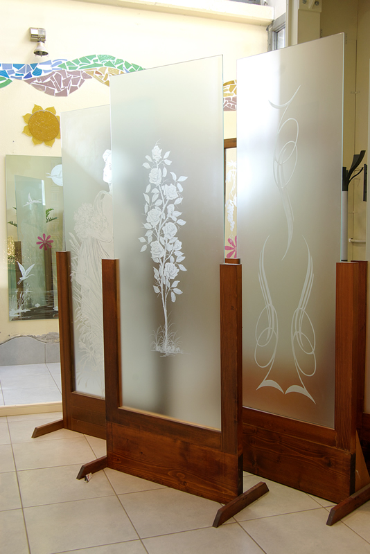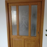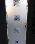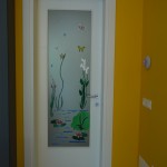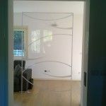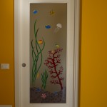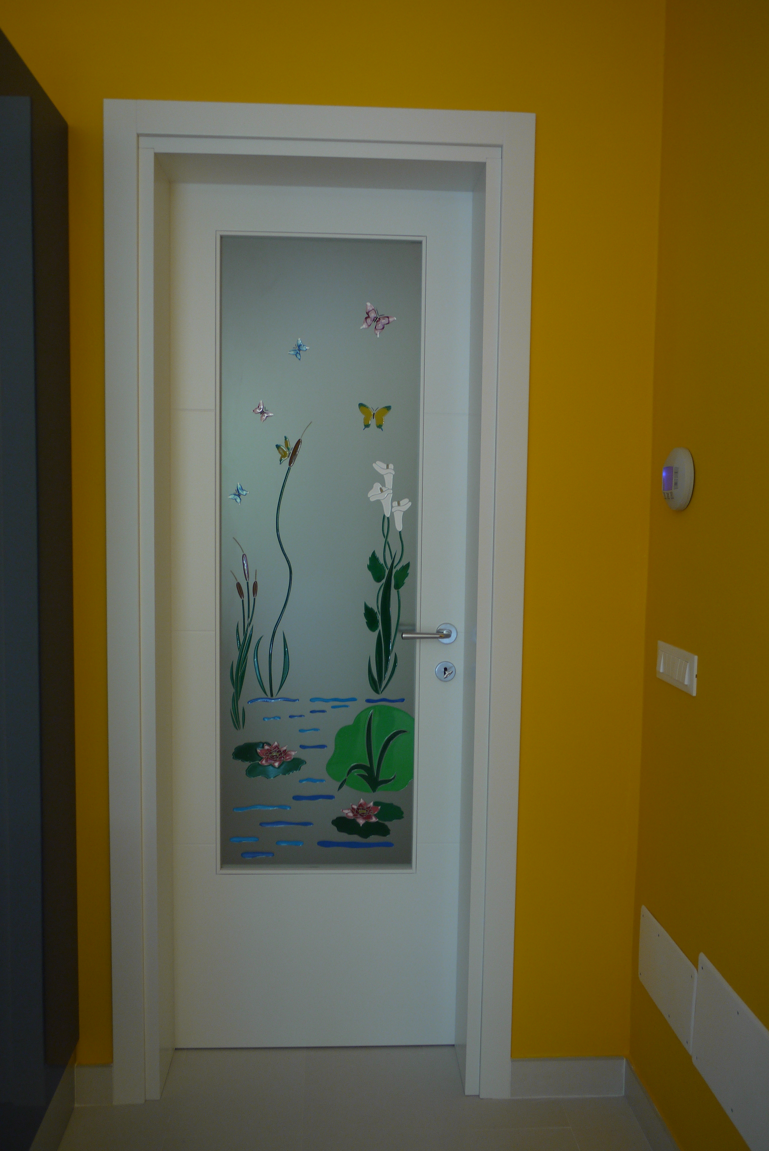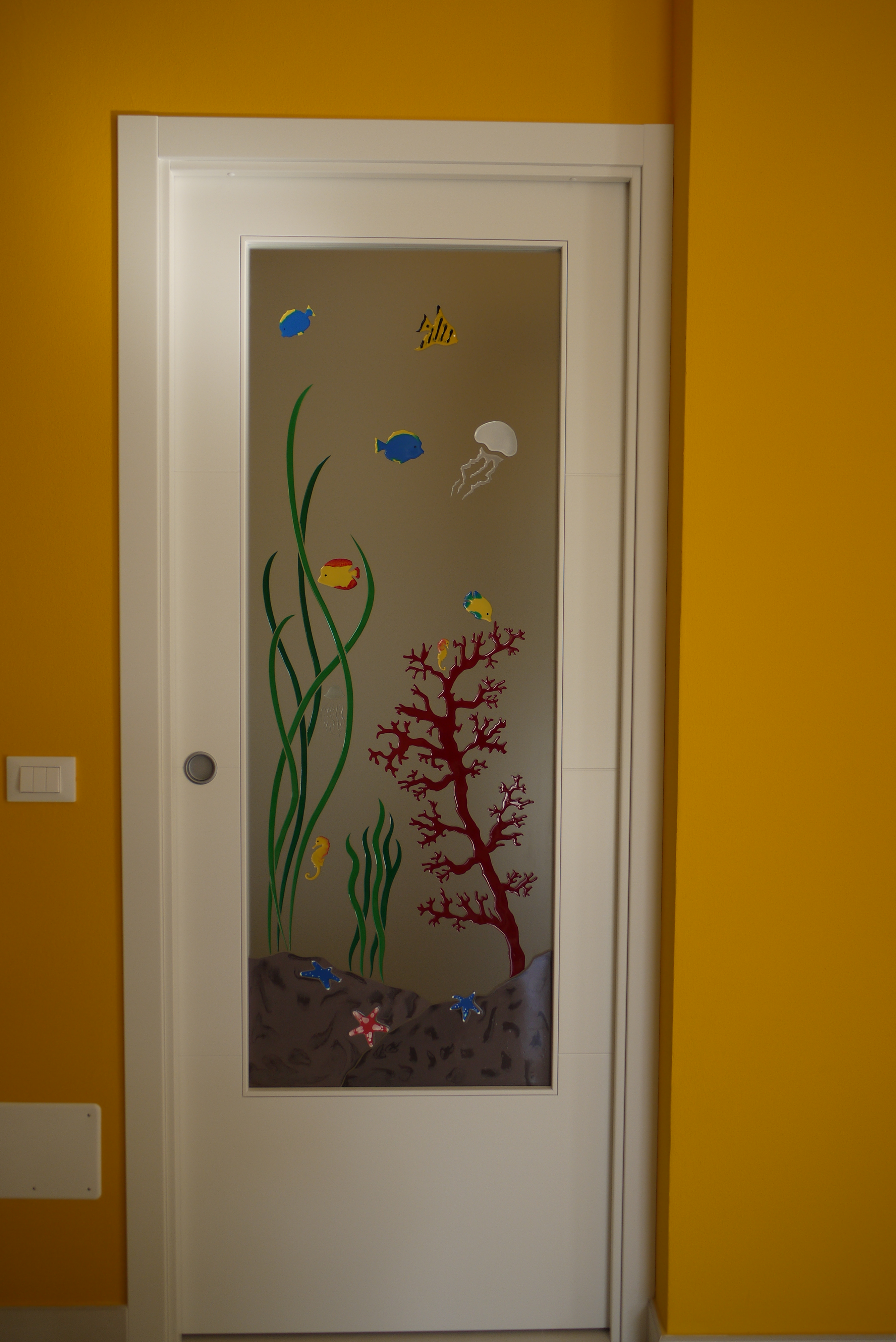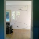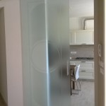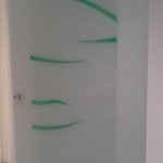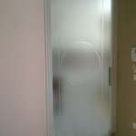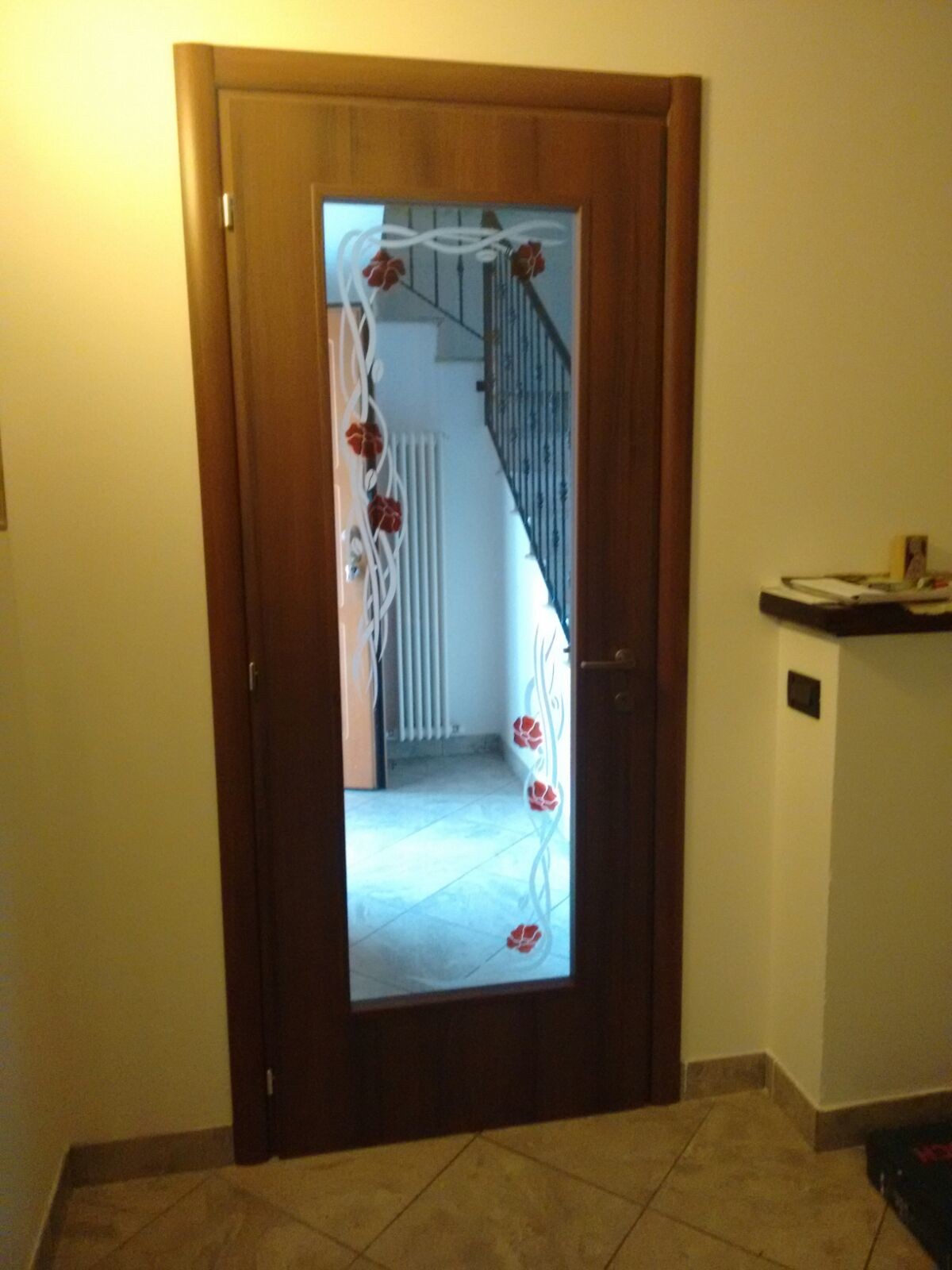 - porta in vetro scorrevole con decoro sabbiato e verniciato completo di kit in alluminio